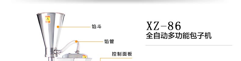 XZ-86型全自動包子機,可生產各種肉包、菜包、肉菜包、小籠包、湯包、水晶包、圓饅頭、奶黃包、豆沙包、叉燒包、南瓜餅、煎堆等十幾種包餡制品。適用于賓館、飯店、學校、機關企業食堂、饅頭或包子加工廠、早餐工程店及速凍食品廠等單位。可滿足不同客戶群體。免費提供工藝技術。免費上門培訓指導安裝。