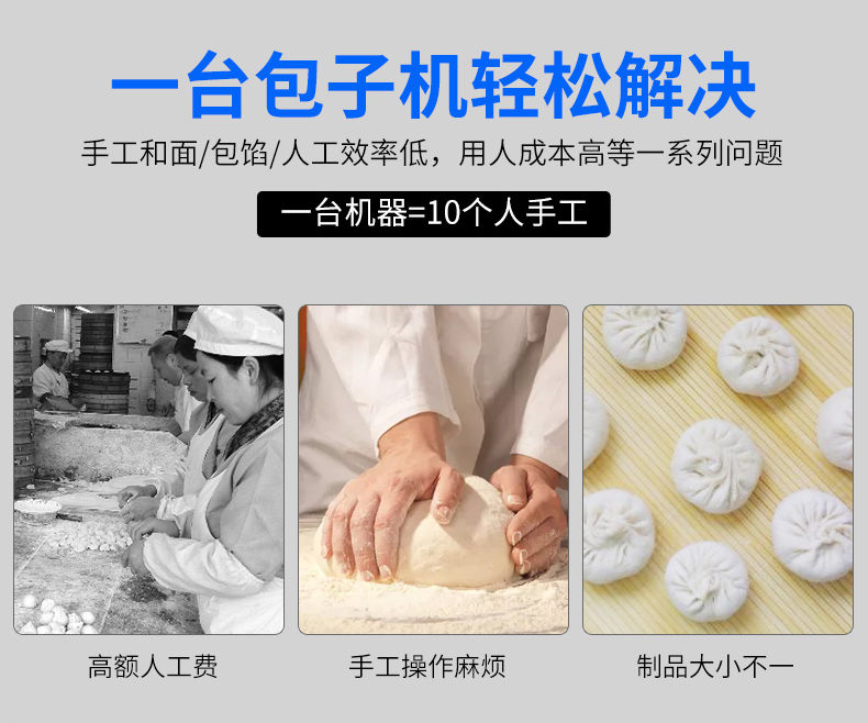 XZ-290A智能型卷面包子機,仿手工智能包子機。操作簡單、精準(zhǔn)控制、快速成型、模擬人工。好機器,表里如一,專注品質(zhì)機器,客戶現(xiàn)場試機。一臺包子機輕松解決手工和面/包餡/人工效率低,用人成本高等一系列問題。