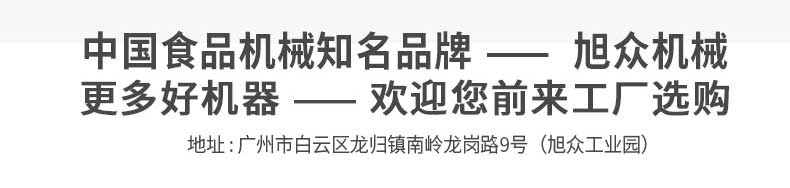 廣州旭眾食品機械有限公司是一家集科研開發,生產設計,營銷服務為一體的現代化生產企業。現代化生產車間,精湛制造技術,所產機械歷經市場重重考驗,不斷贏得海內外客戶的贊譽。