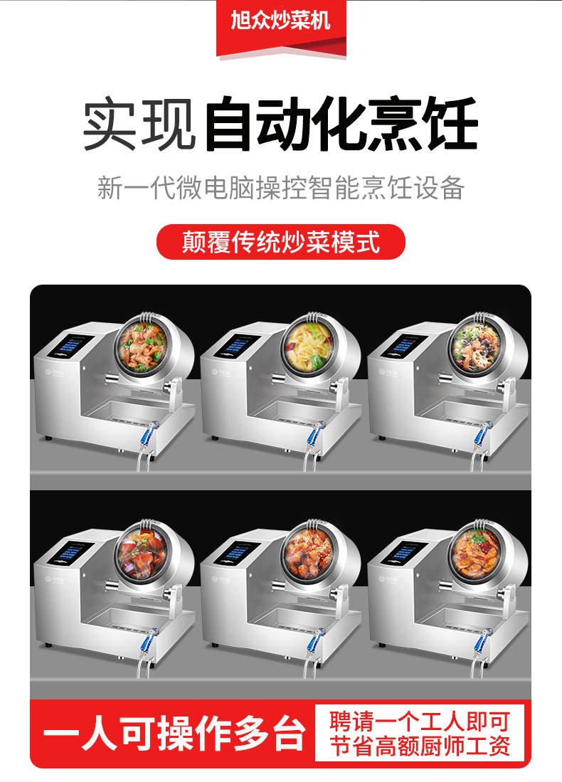 XZ-30TCP臺式300智能電磁炒菜機(觸屏+噴料),可以實現自動化烹飪過程的智能化設備,語音播報、自動噴料、旋轉翻炒、快速出菜。實現自動化烹飪,新一代微電腦操控智能烹飪設備、顛覆傳統炒菜模式。5000W猛火爆炒美食更鮮香