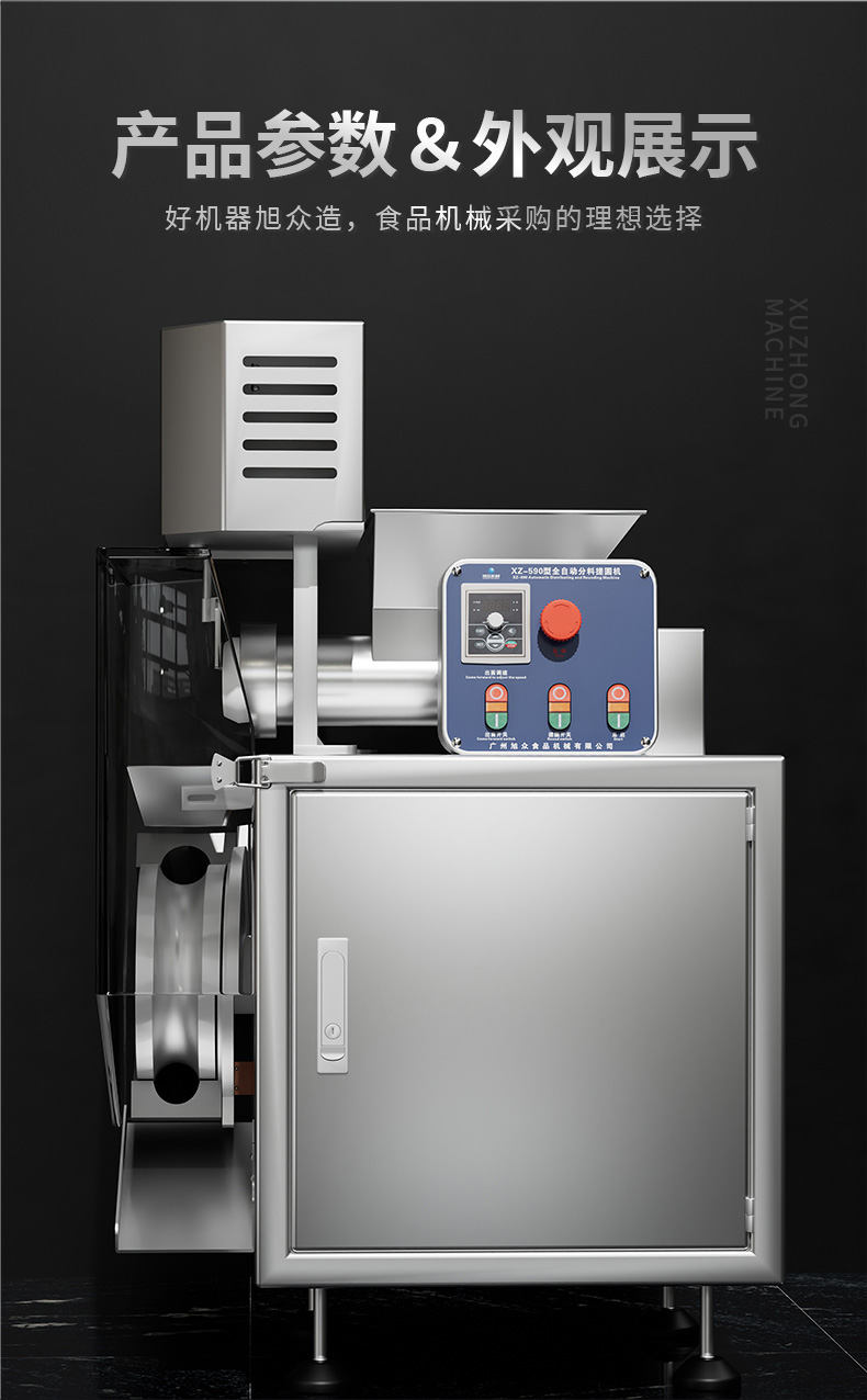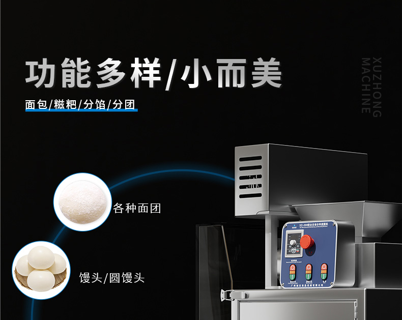 XZ-590搓圓機,商用搓圓機,專注細節匠心品質。功能多樣,小而美,面包、糍粑、分餡、分團。整機優質不銹鋼,采用優質201不銹鋼焊接完成。