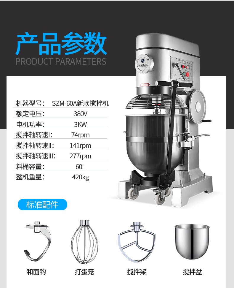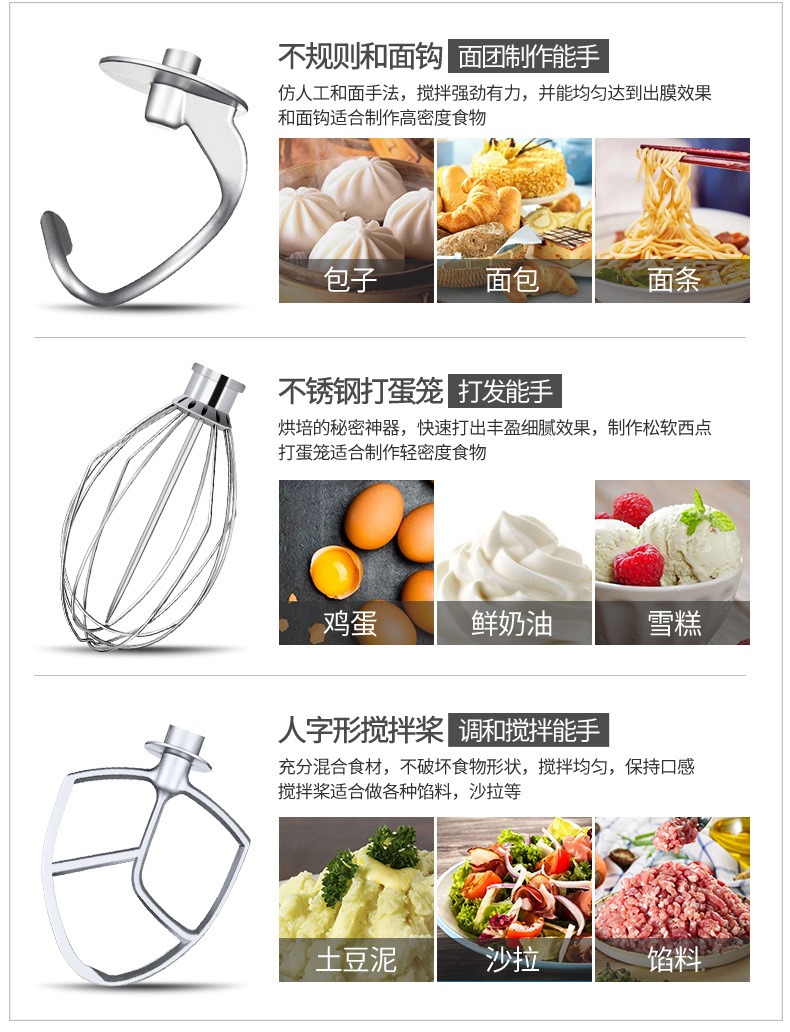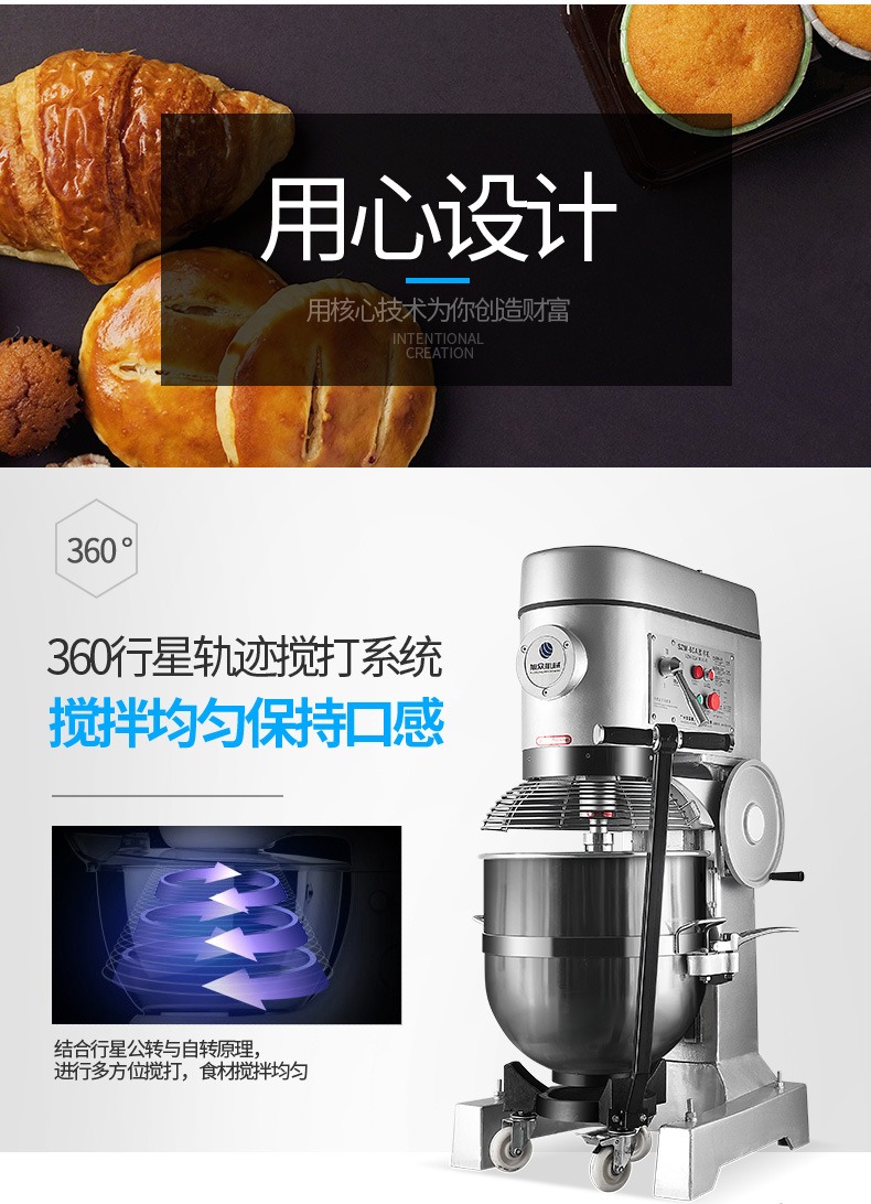 多功能攪拌和面機,創業神器,開創廚房新時代。多功能高效率,讓您省心省力又省事。360行星軌跡攪打系統,攪拌均勻保持口感。3000W大功率強勁電機,穩定高效使用長久。