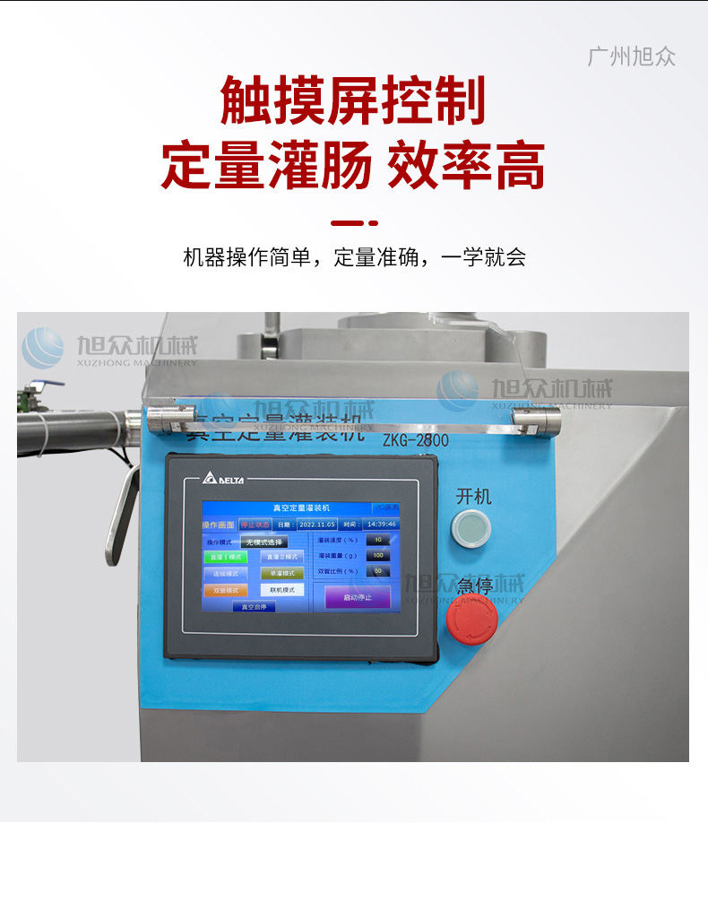 XZ-ZKG2800真空灌腸機,真空葉片灌裝機連續作業加料后不需停機,可灌肉粒&肉糜實用性強灌各種腸可做烤腸、親親腸、廣式臘腸、火鍋腸等連續灌制長腸。