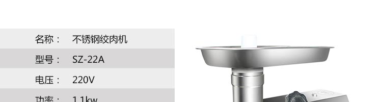 SZ-22A 絞肉機,可將未解凍的肉塊或鮮肉直接進行絞切,制成規格不同的肉粒