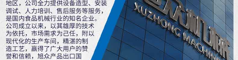 廣州旭眾食品機械有限公司是一家集科研開發,生產設計,營銷服務為一體的現代化生產企業。現代化生產車間,精湛制造技術,所產機械歷經市場重重考驗,不斷贏得海內外客戶的贊譽。