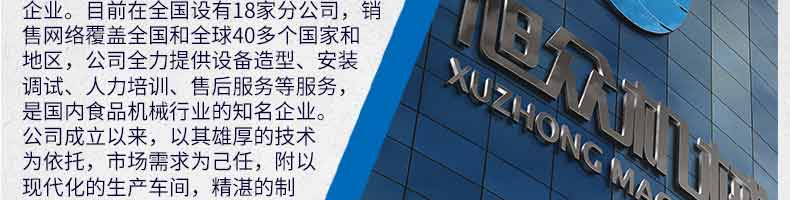 廣州旭眾食品機械有限公司是一家集科研開發,生產設計,營銷服務為一體的現代化生產企業。現代化生產車間,精湛制造技術,所產機械歷經市場重重考驗,不斷贏得海內外客戶的贊譽。