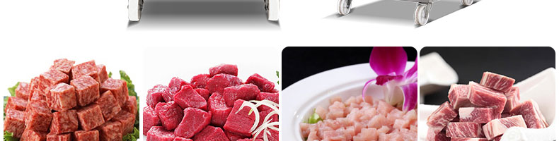 XZ-QC-A460切丁機,切雞丁機適合將帶軟骨的禽類,如雞、鴨、鵝、鴿、魚類等切成塊(丁)狀。本系列設備工作效率高,采用不銹鋼制作,美觀耐用,切割快速,少碎骨。