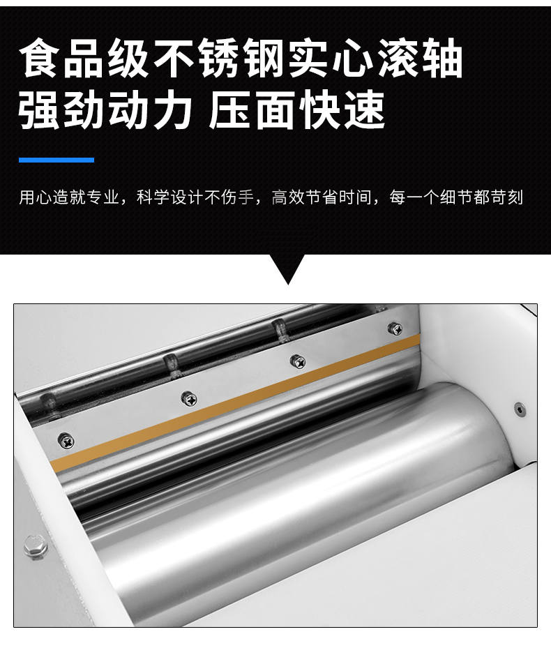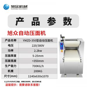 YMZD-350自動壓面機,自動循環、厚薄可調。包子、餃子、饅頭,面館等場所適用。啟動循環壓面、揉面。全自動仿人工揉面,壓面自動輸送、揉、壓、折疊。