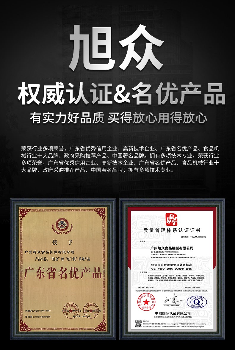 廣州旭眾食品機(jī)械有限公司是一家集科研開發(fā),生產(chǎn)設(shè)計(jì),營銷服務(wù)為一體的現(xiàn)代化生產(chǎn)企業(yè)。現(xiàn)代化生產(chǎn)車間,精湛制造技術(shù),所產(chǎn)機(jī)械歷經(jīng)市場重重考驗(yàn),不斷贏得海內(nèi)外客戶的贊譽(yù)。