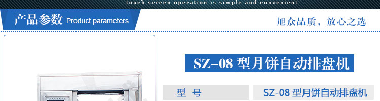 SZ-08型月餅自動排盤機,可同于制作各種月餅。適用于蛋糕房、休閑食品廠、食品加工產、面包房、月餅加工廠、超市、學校、食堂等各種工作場所。可滿足不同客戶群體。免費提供工藝技術。